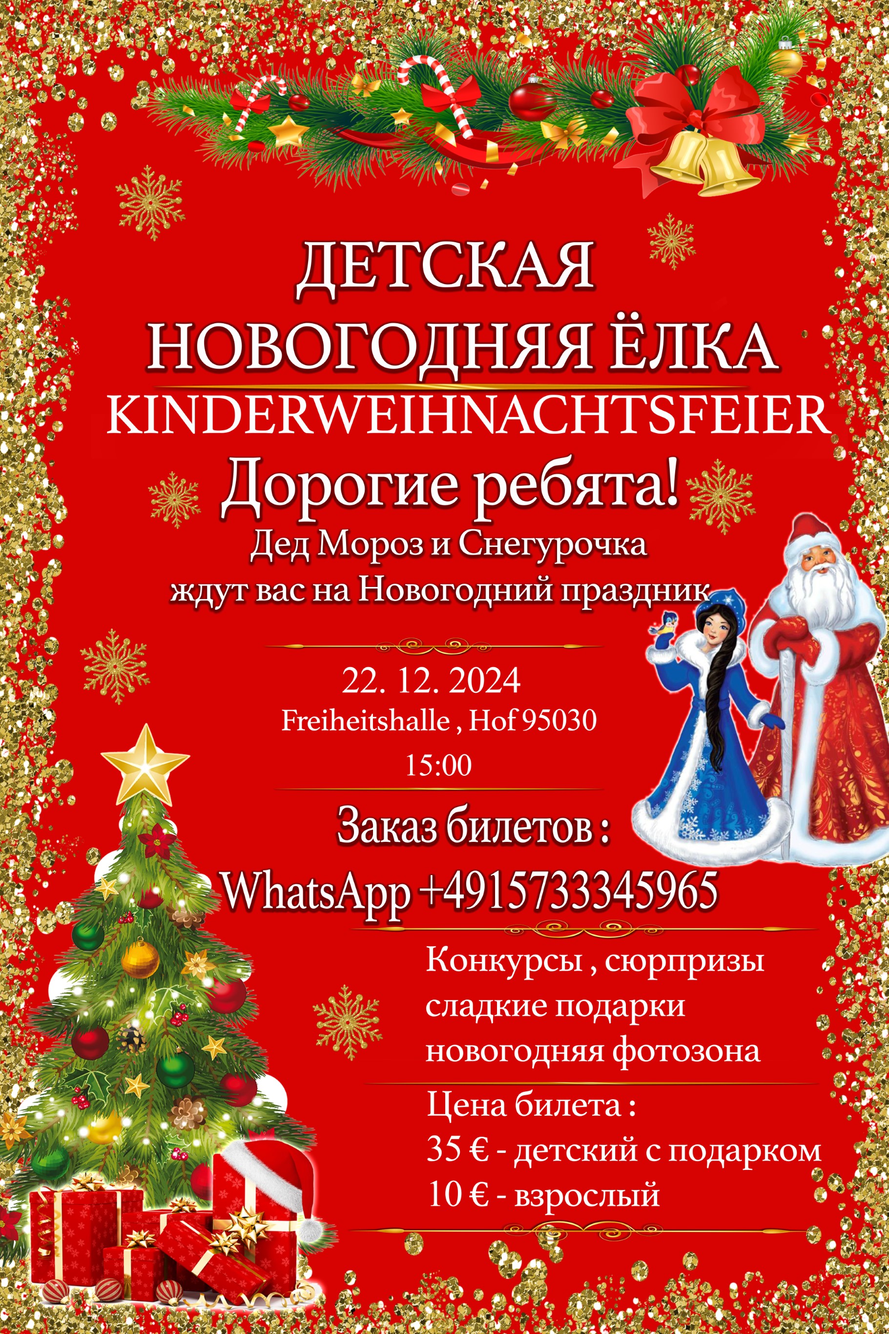 Weihnachtsfeier für Kinder und Eltern mit Weihnachtsmann, «Snegurochka» und Märchenfiguren